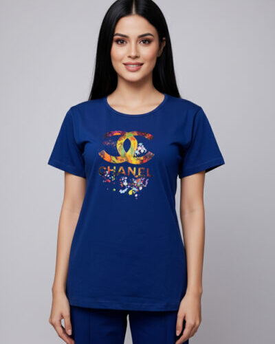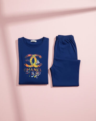 Artistic Navy Chanel Splash Pajama Set for Modern, Stylish Home Comfort