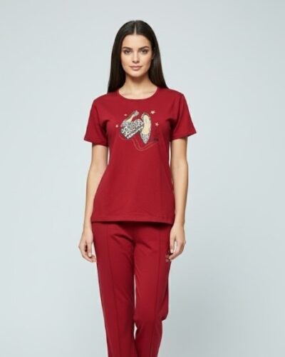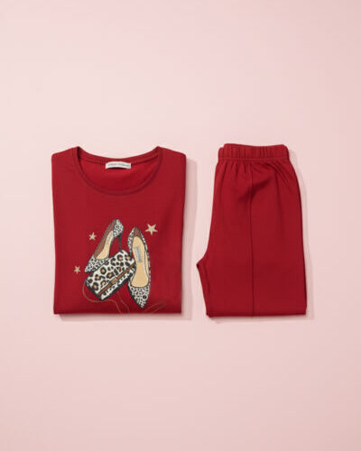 Bold Red Fashion Heels Cozy Pajama Set for Stylish Daily Lounging