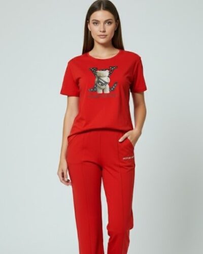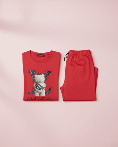 Bold Red LV Bear Soft Pajama Set for Cute & Comfy Everyday Lounging