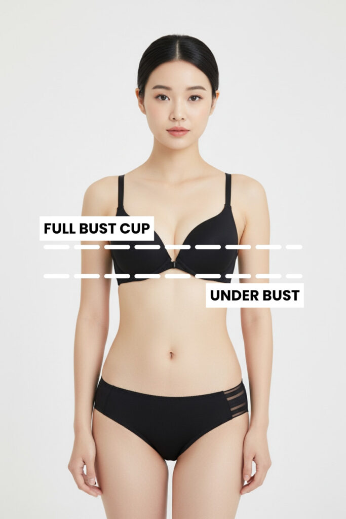 Underbust — Measure directly below the breast. The measuring tape should not be too tight or too loose.